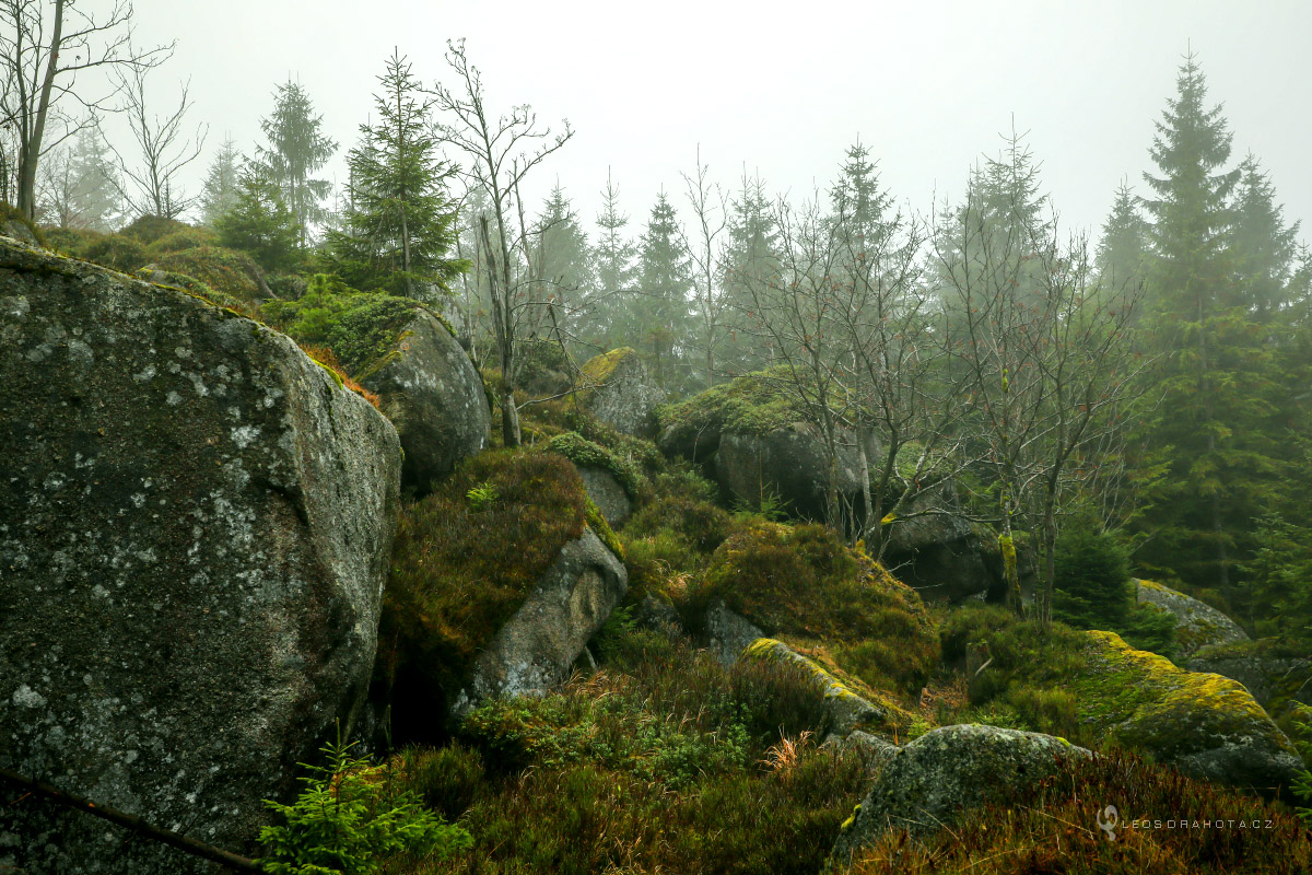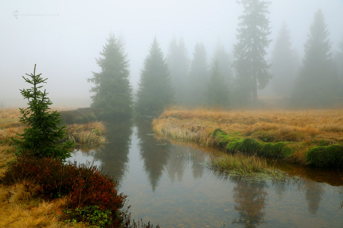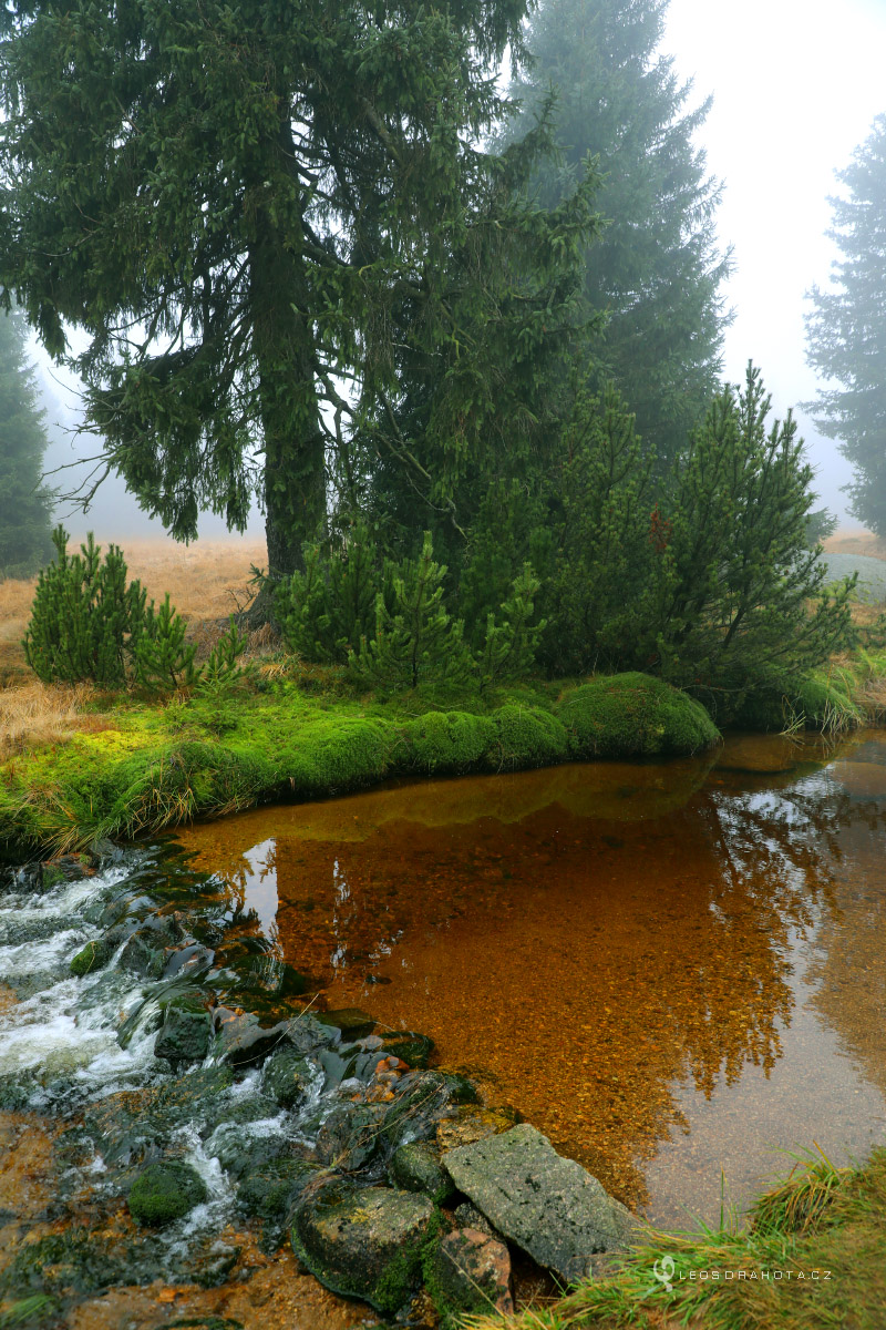 Máčené dešti, halené mlhami, studené a zubožené. Takové severočeské hory bezesporu jsou. Pro mne a myslím si že nejen pro mne, ale mají Jizerky zvláštní kouzlo. Ve vší své syrovosti, prostoupeny žulami, zatopeny močály, vyživovány rezavými potoky a zabaleny do zelených bučin jsou mi zemí nepodbízivě půvabnou, tajemnou, pohanskou a smyslnou. Voní nacucanou rašelinou, horským lesem i kouřem z chalup vesnice v údolí, zní bubláním bystřin a zrychleným tlukotem vlastního srdce při stoupání na holé vrcholy. Když v podzimním večeru sedím na chladném kameni, na některé ze skalních vyhlídek, nevidím živáčka a pozoruji barevným lesem vyvíjený opar, zvěstující příchod zimy, je mi zvláštně, smutno a krásně. (2001)