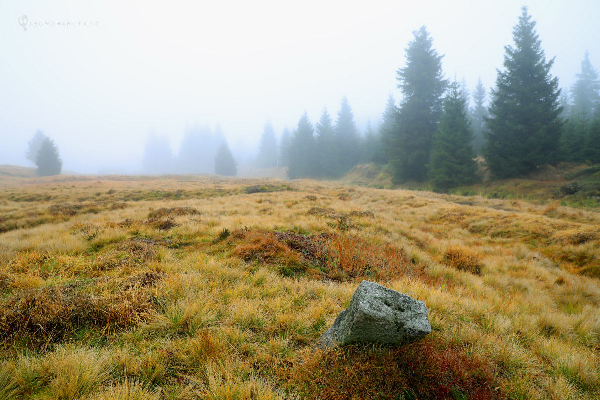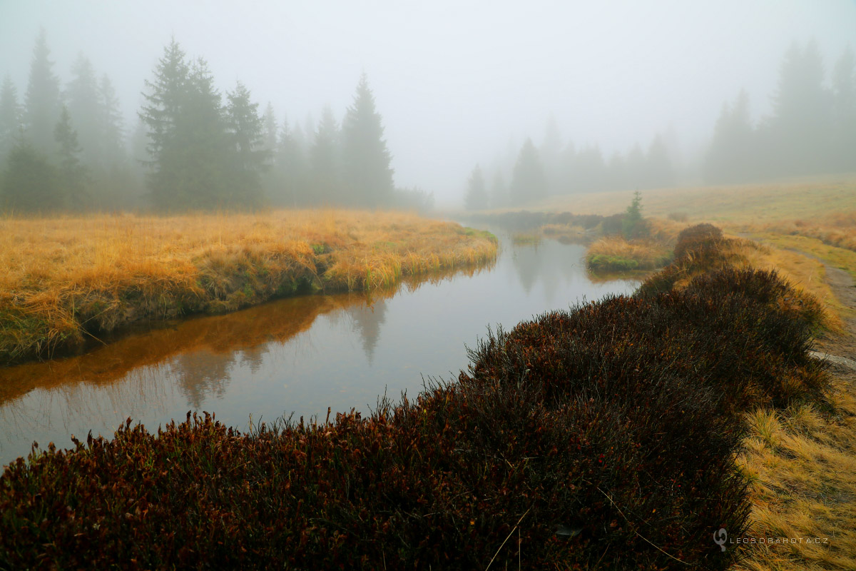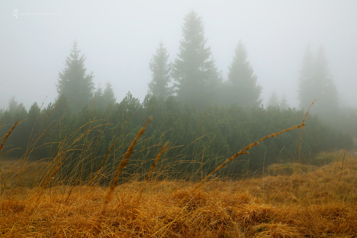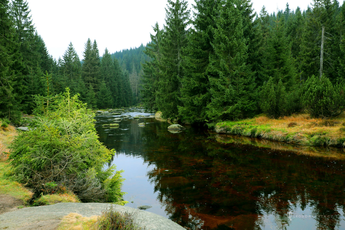 Máčené dešti, halené mlhami, studené a zubožené. Takové severočeské hory bezesporu jsou. Pro mne a myslím si že nejen pro mne, ale mají Jizerky zvláštní kouzlo. Ve vší své syrovosti, prostoupeny žulami, zatopeny močály, vyživovány rezavými potoky a zabaleny do zelených bučin jsou mi zemí nepodbízivě půvabnou, tajemnou, pohanskou a smyslnou. Voní nacucanou rašelinou, horským lesem i kouřem z chalup vesnice v údolí, zní bubláním bystřin a zrychleným tlukotem vlastního srdce při stoupání na holé vrcholy. Když v podzimním večeru sedím na chladném kameni, na některé ze skalních vyhlídek, nevidím živáčka a pozoruji barevným lesem vyvíjený opar, zvěstující příchod zimy, je mi zvláštně, smutno a krásně. (2001)